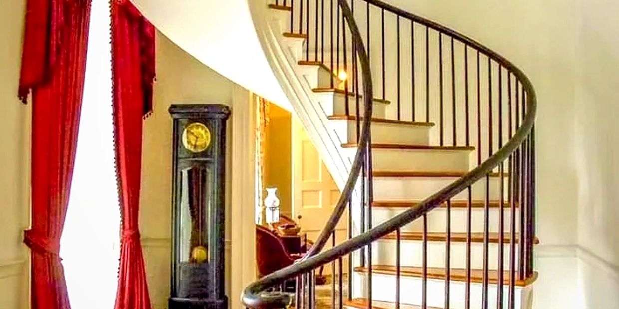Completed in 1812, Auburn was “designed to be the most magnificent building in the territory” and was built for Lyman Harding, the first Attorney General of Mississippi. After his death in 1820, the home was purchased by Stephen Duncan, a physician and wealthy planter, and his wife, Catherine and remained in the Duncan family until 1911 when the heirs donated the home and 210 acres adjacent to it, now a park, to the city of Natchez. The most striking thing about the mansion is the free-standing spiral stairway that rises between the ground and second floor completely unsupported. The separate kitchen and servants quarters are original outbuildings to the home and stand independently at the rear entrance.